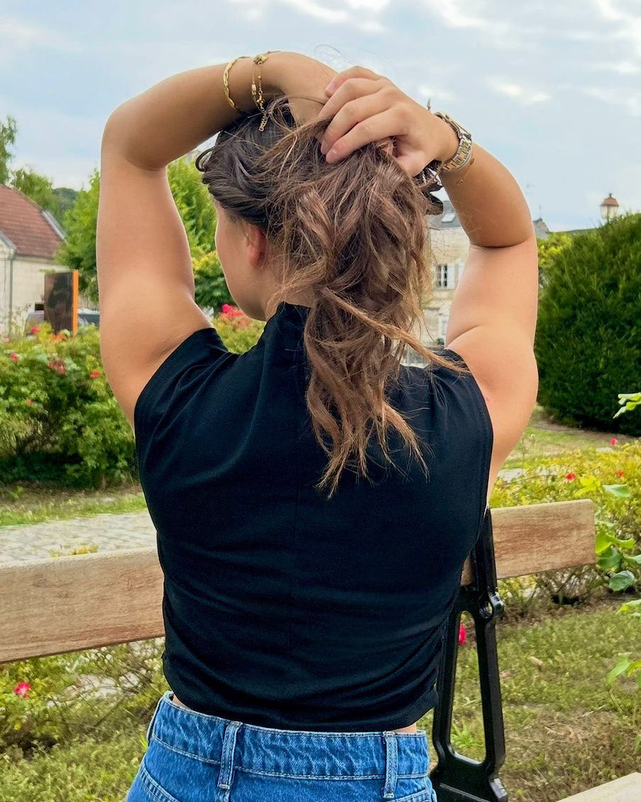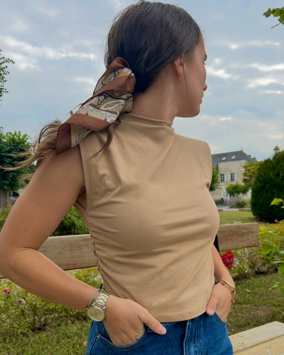 Succombez à l’allure raffinée du top sans manches Inaya, une pièce intemporelle qui conjugue élégance et simplicité. Son col montant structure la silhouette avec chic, tandis que sa coupe épurée en fait un indispensable de votre dressing.