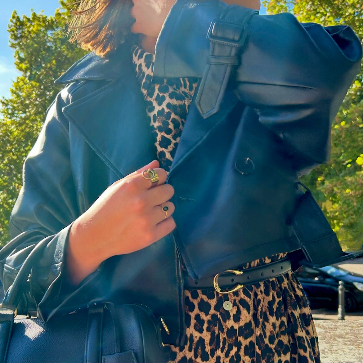 Sa ceinture intégrée qui permet de marquer la taille et structurer la silhouette, tout en apportant une touche féminine au style trench. Le côté court du vêtement casse le côté classique du trench basique.